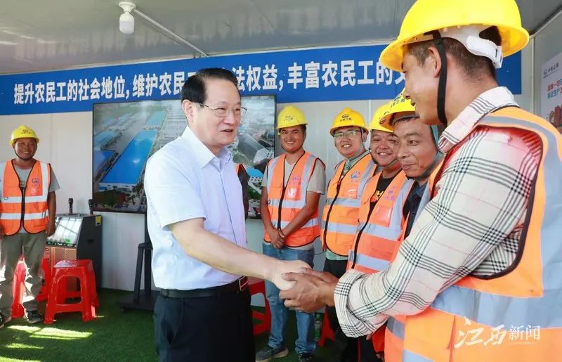 赤日炎炎,南昌洪騰高架項(xiàng)目現(xiàn)場(chǎng)一派繁忙,工程車來回進(jìn)行路面瀝青攤鋪,工人們正在揮汗如雨作業(yè)。易煉紅來到工地現(xiàn)場(chǎng),向一線建設(shè)者們致以問候,感謝他們?yōu)槟喜鞘薪ㄔO(shè)作出的貢獻(xiàn)。他說,南昌是英雄城。大家來自全國各地,頂著烈日、不懼“烤”驗(yàn),揮灑的每一滴汗水、付出的每一份辛勤都是在為英雄城南昌的建設(shè)發(fā)展添油助力,你們是光榮的勞動(dòng)者,也是在高溫下戰(zhàn)斗的“英雄”。易煉紅反復(fù)叮囑大家要保重身體,采取有效措施防暑降溫,注意自我防護(hù)、勞逸結(jié)合,以健康的身體投入緊張的工作。在現(xiàn)場(chǎng),易煉紅還聽取了項(xiàng)目有關(guān)情況介紹,要求在確保質(zhì)量和安全的前提下,加快推進(jìn)項(xiàng)目建設(shè),確保早日建成通車。